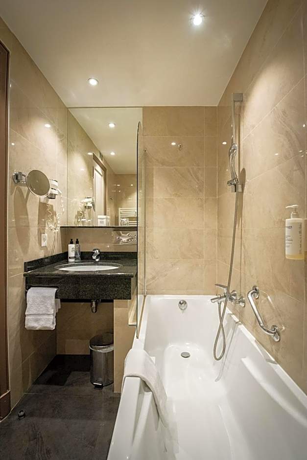 The pool with a view is a top feature of this twin room. Featuring free toiletries and bathrobes, this twin room includes a private bathroom with a bath and a hairdryer. The air-conditioned twin room features a flat-screen TV with cable channels, soundproof walls, a mini-bar, a tea and coffee maker as well as city views. The unit has 2 beds.